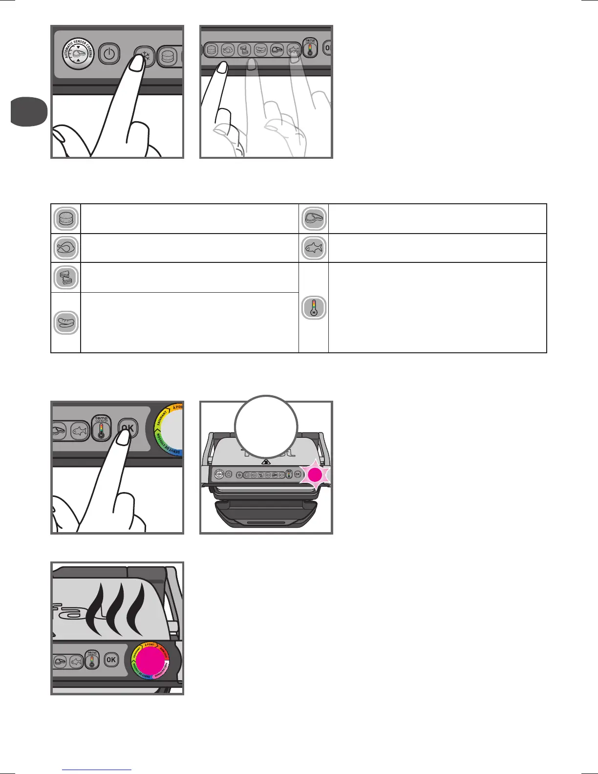 Select this cooking program to cook burgers. Select this cooking program to cook red meat.