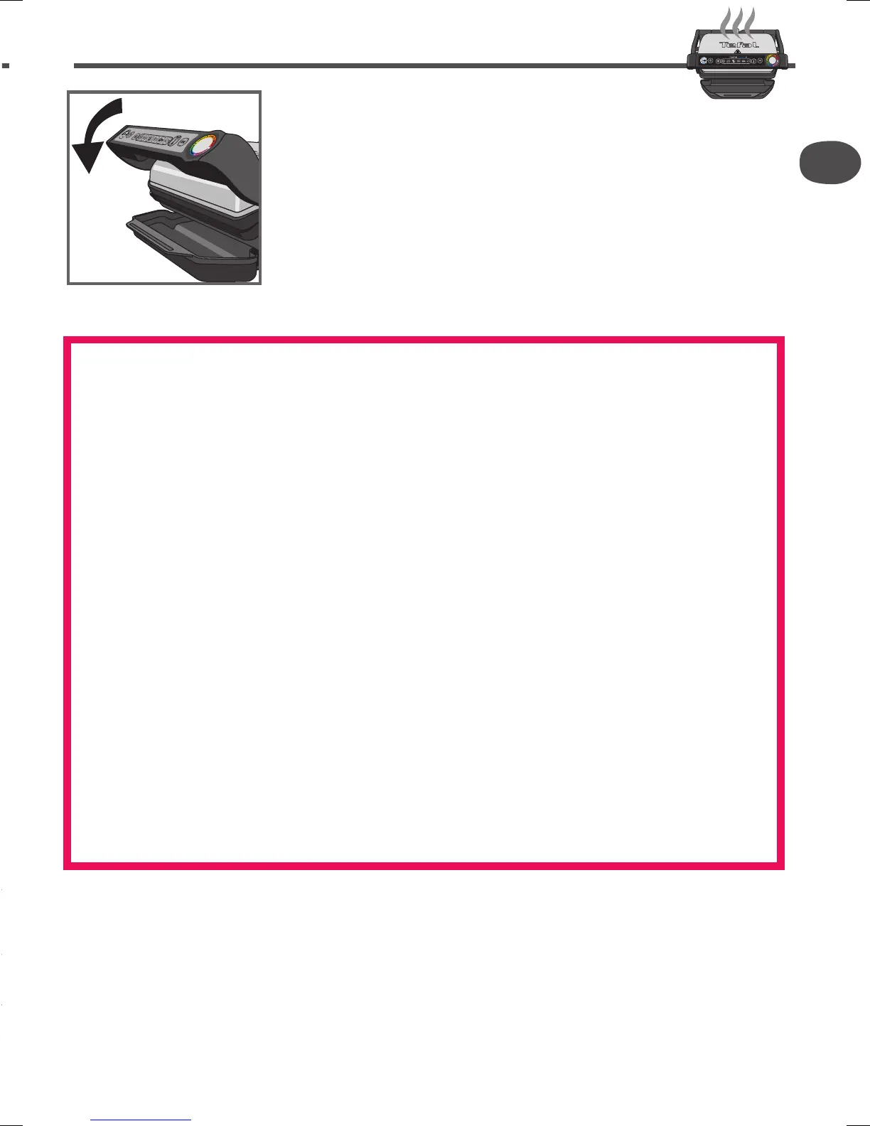 1. Make sure that the appliance is closed and no remnants of food remain inside.
