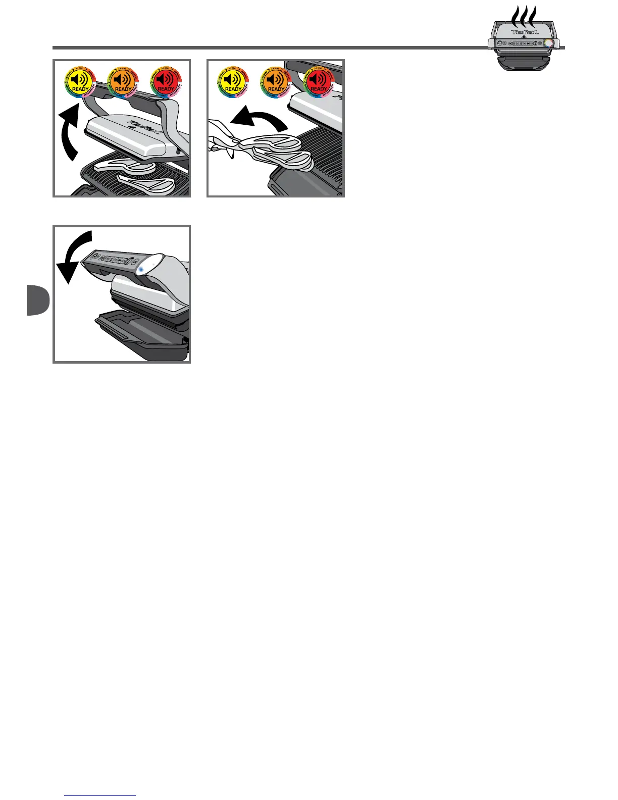 5. Amikor az előmelegítés befejeződött, a készülék használatra kész. Nyissa fel a grillsütő fedelét, és