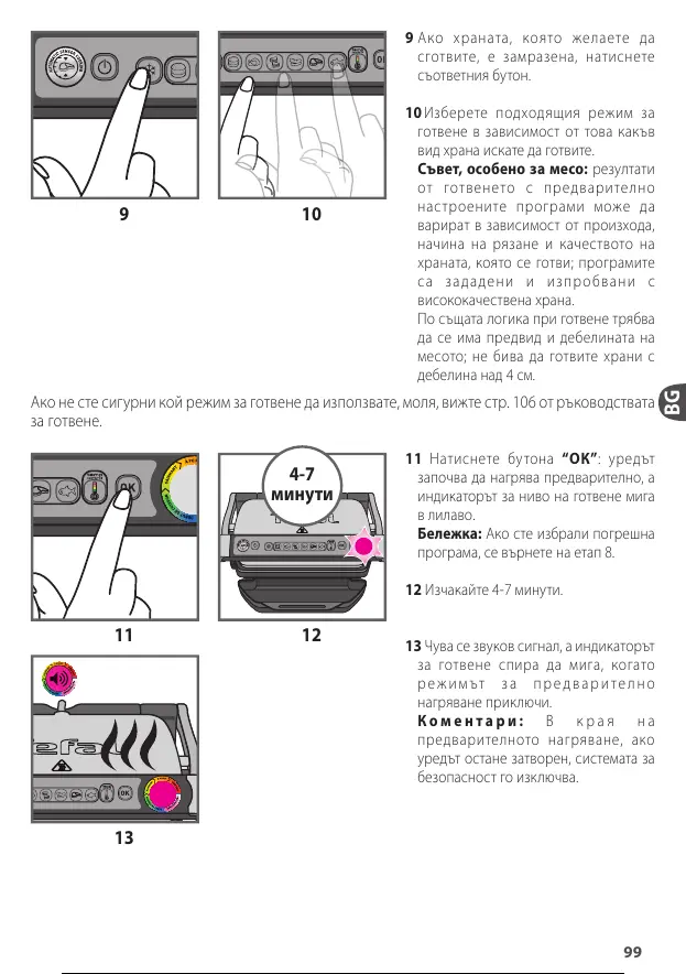 Ако не сте сигурни кой режим за готвене да използвате, моля, вижте стр. 106 от ръководствата