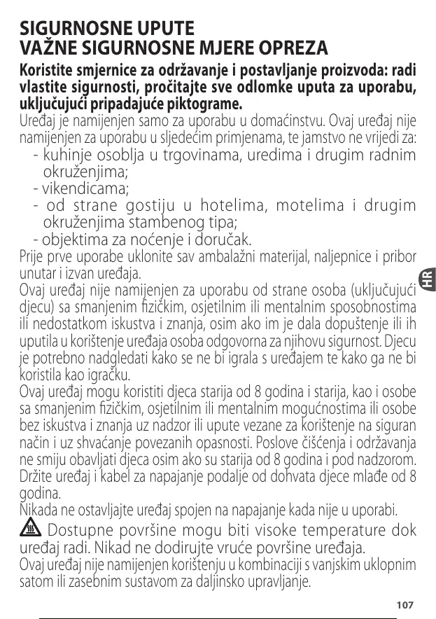 Uređaj je namijenjen samo za uporabu u domaćinstvu. Ovaj uređaj nije