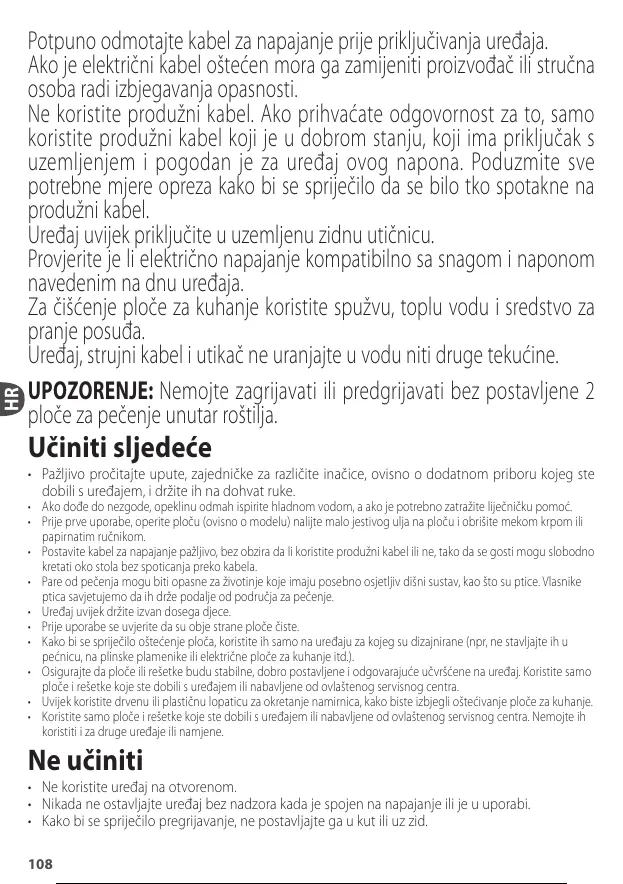 • Nikada ne ostavljajte uređaj bez nadzora kada je spojen na napajanje ili je u uporabi.