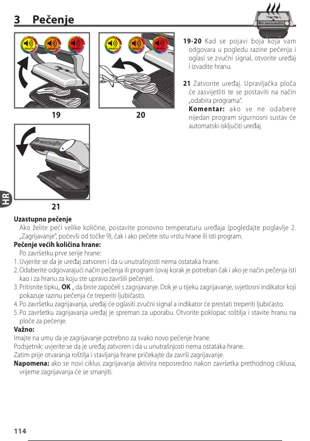 Imajte na umu da je zagrijavanje potrebno za svako novo pečenje hrane.