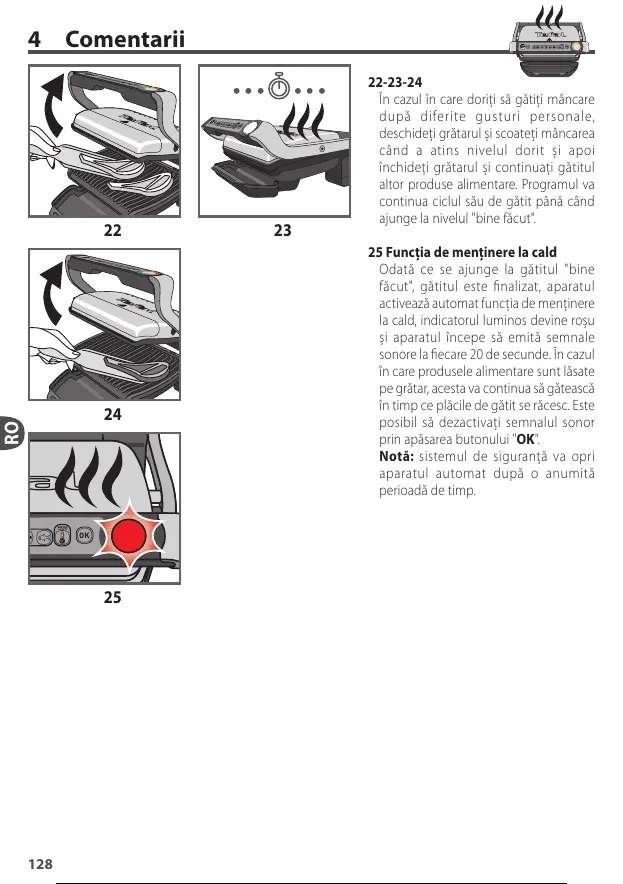 25 Funcţia de menţinere la cald