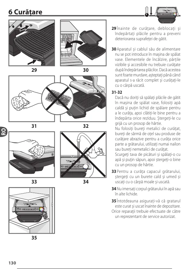 34 Nu imersaţi corpul grătarului în apă sau
