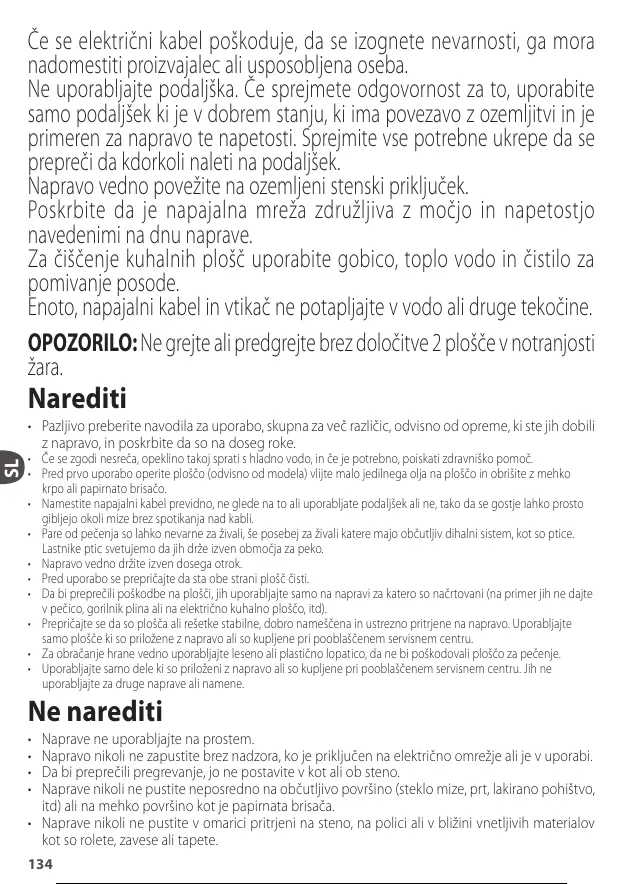 • Napravo nikoli ne zapustite brez nadzora, ko je priključen na električno omrežje ali je v uporabi.