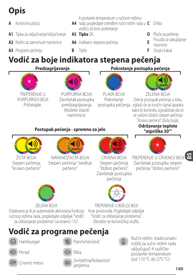 A2 Režim za zamrznute namirnice A6 Indikator stepena pečenja E