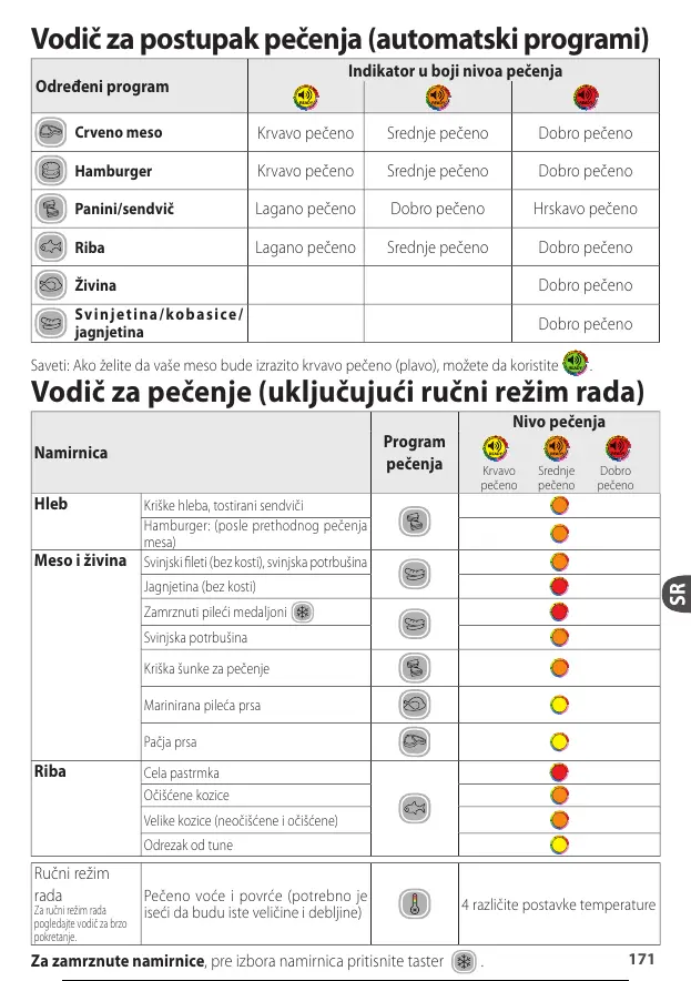 Vodič za pečenje (uključujući ručni režim rada)