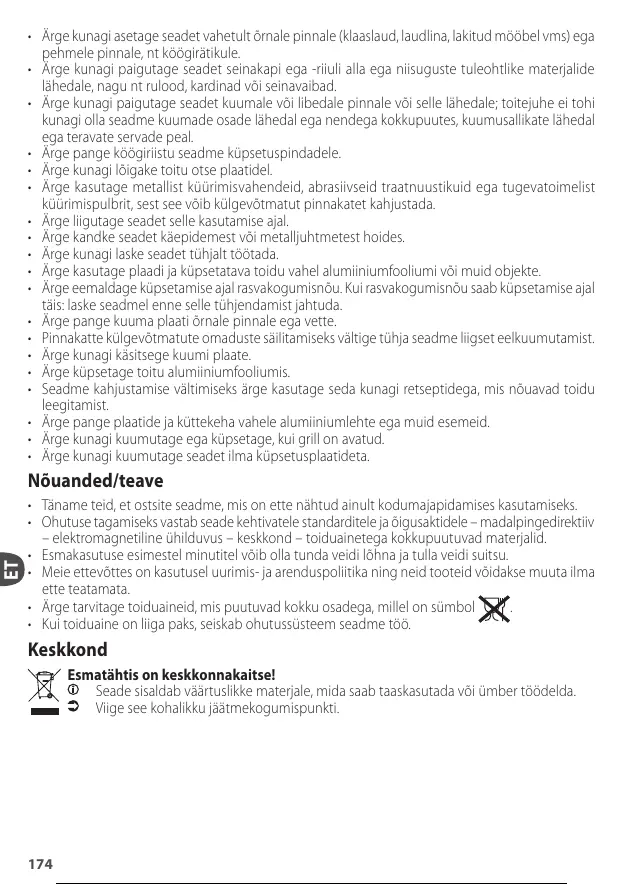 • Täname teid, et ostsite seadme, mis on ette nähtud ainult kodumajapidamises kasutamiseks.