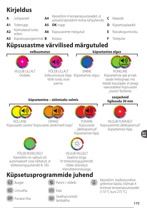 A3 Küpsetusprogrammid B Korpus F Toitejuhe
