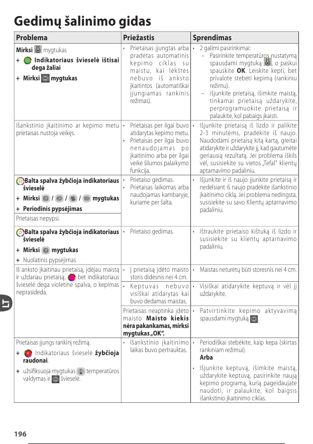 • Prietaiso gedimas. • Ištraukite prietaiso kištuką iš lizdo ir