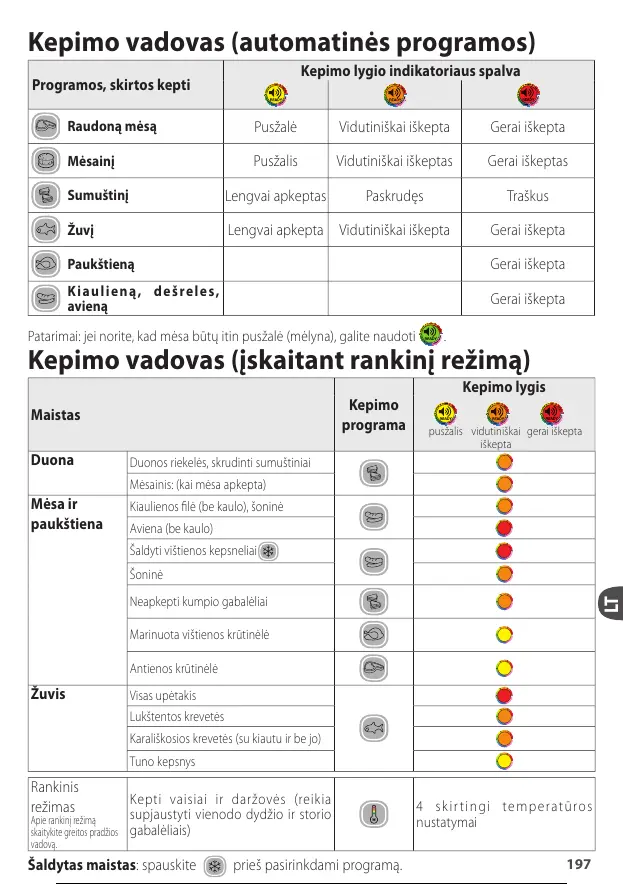 Kepimo vadovas (įskaitant rankinį režimą)
