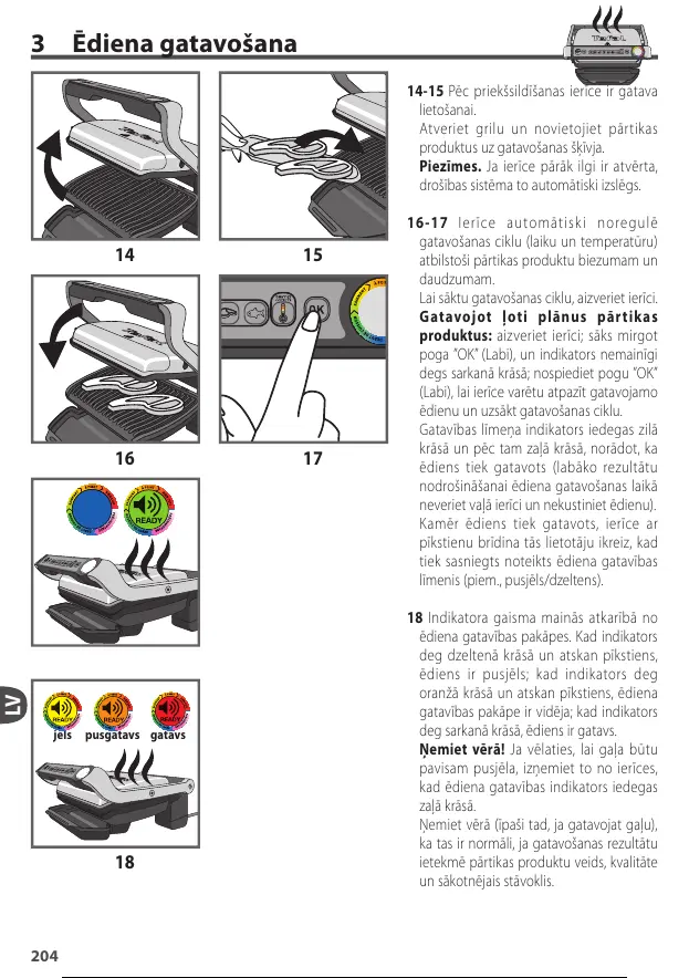 14-15 Pēc priekšsildīšanas ierīce ir gatava