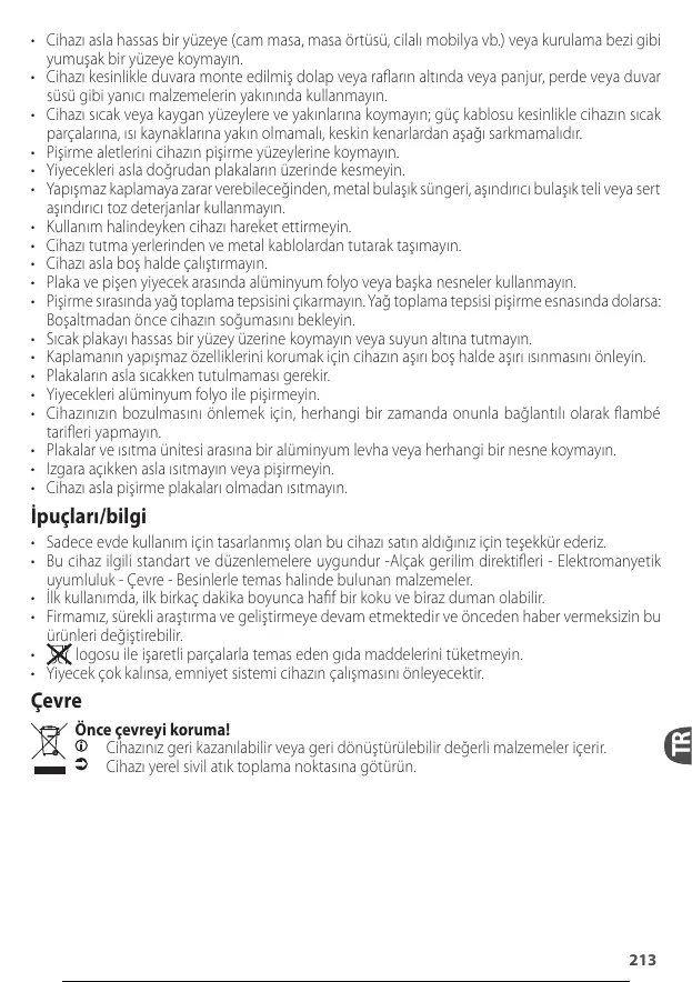 • logosu ile işaretli parçalarla temas eden gıda maddelerini tüketmeyin.