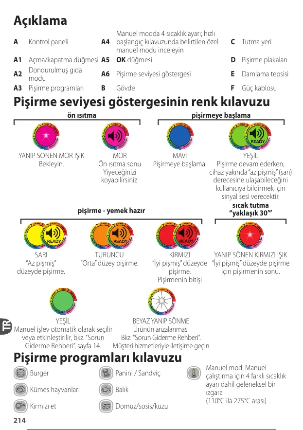 Pişirme seviyesi göstergesinin renk kılavuzu