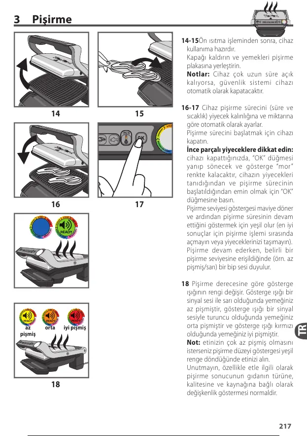 sıcaklık) yiyecek kalınlığına ve miktarına
