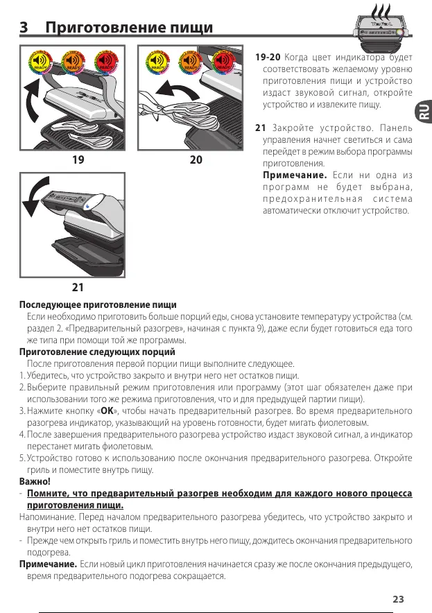 раздел 2. «Предварительный разогрев», начиная с пункта 9), даже если будет готовиться еда того