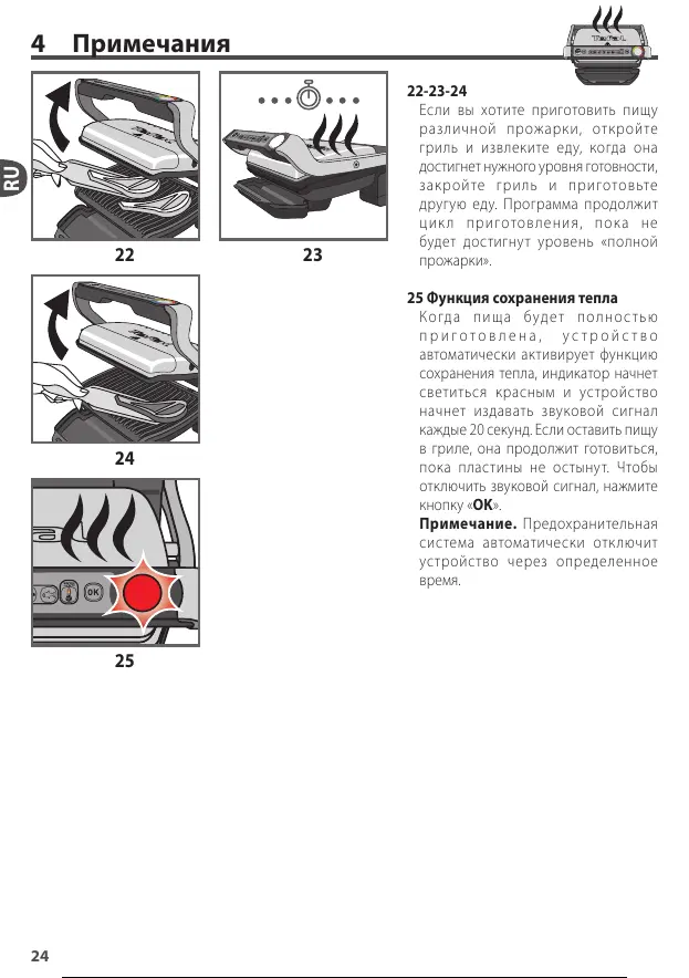 в гриле, она продолжит готовиться,
