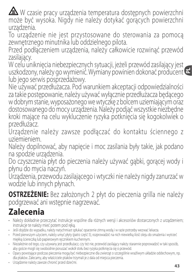 OSTRZEŻENIE: Bez założonych 2 płyt do pieczenia grilla nie należy