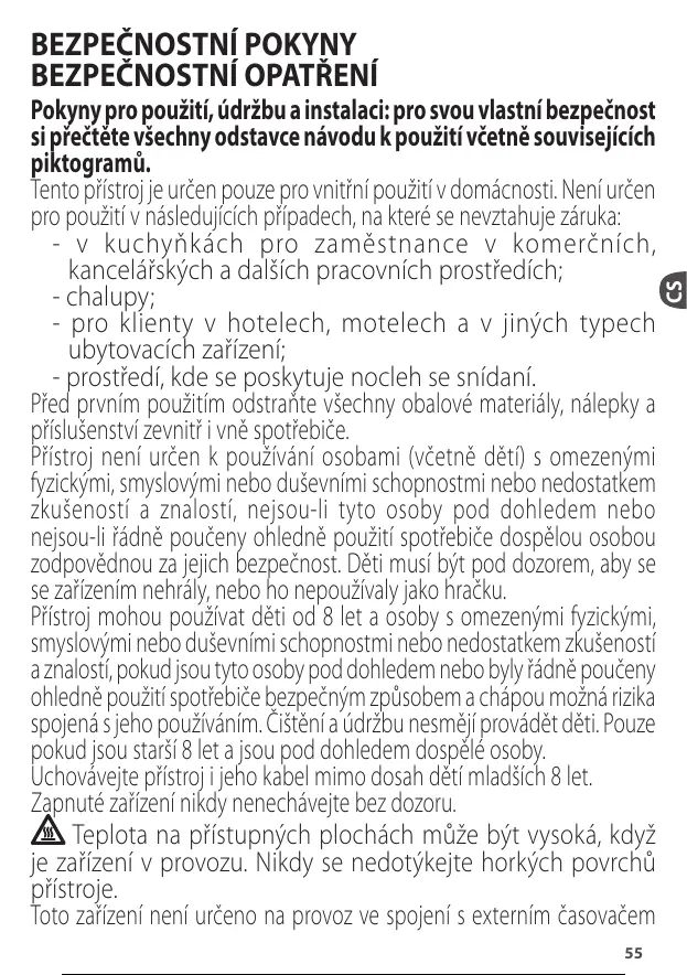 spojená s jeho používáním. Čištění a údržbu nesmějí provádět děti. Pouze