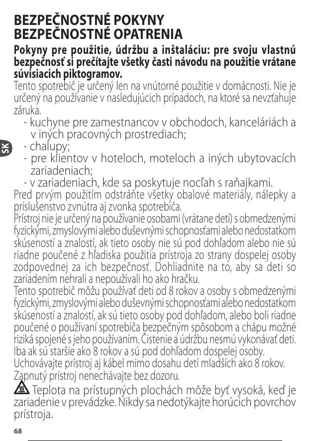 Tento spotrebič je určený len na vnútorné použitie v domácnosti. Nie je