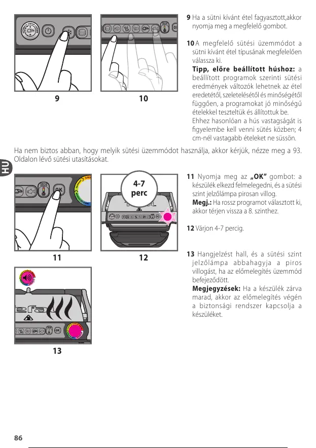 Ha nem biztos abban, hogy melyik sütési üzemmódot használja, akkor kérjük, nézze meg a 93.