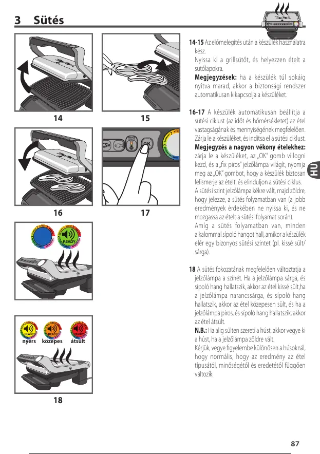 sípoló hang hallatszik, akkor az étel kissé sült,ha