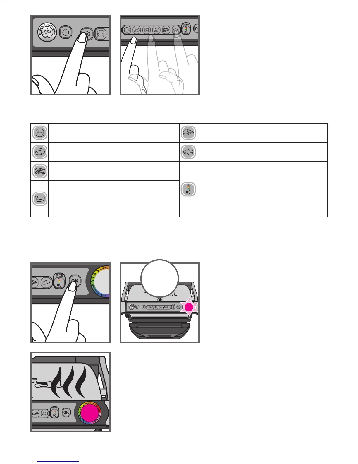 *For bacon less than 4 mm thickness, after preheating the grill and closing the lid, press OK to ensure the appliance recognises the food and