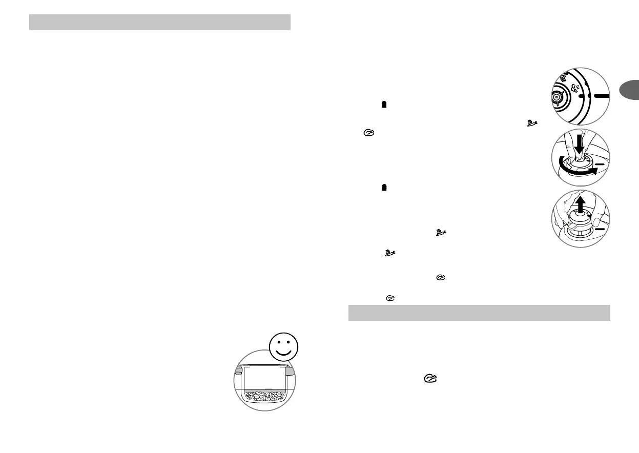 the lid (F) with the other hand in an anti-clockwise direction until open - Fig. 2.