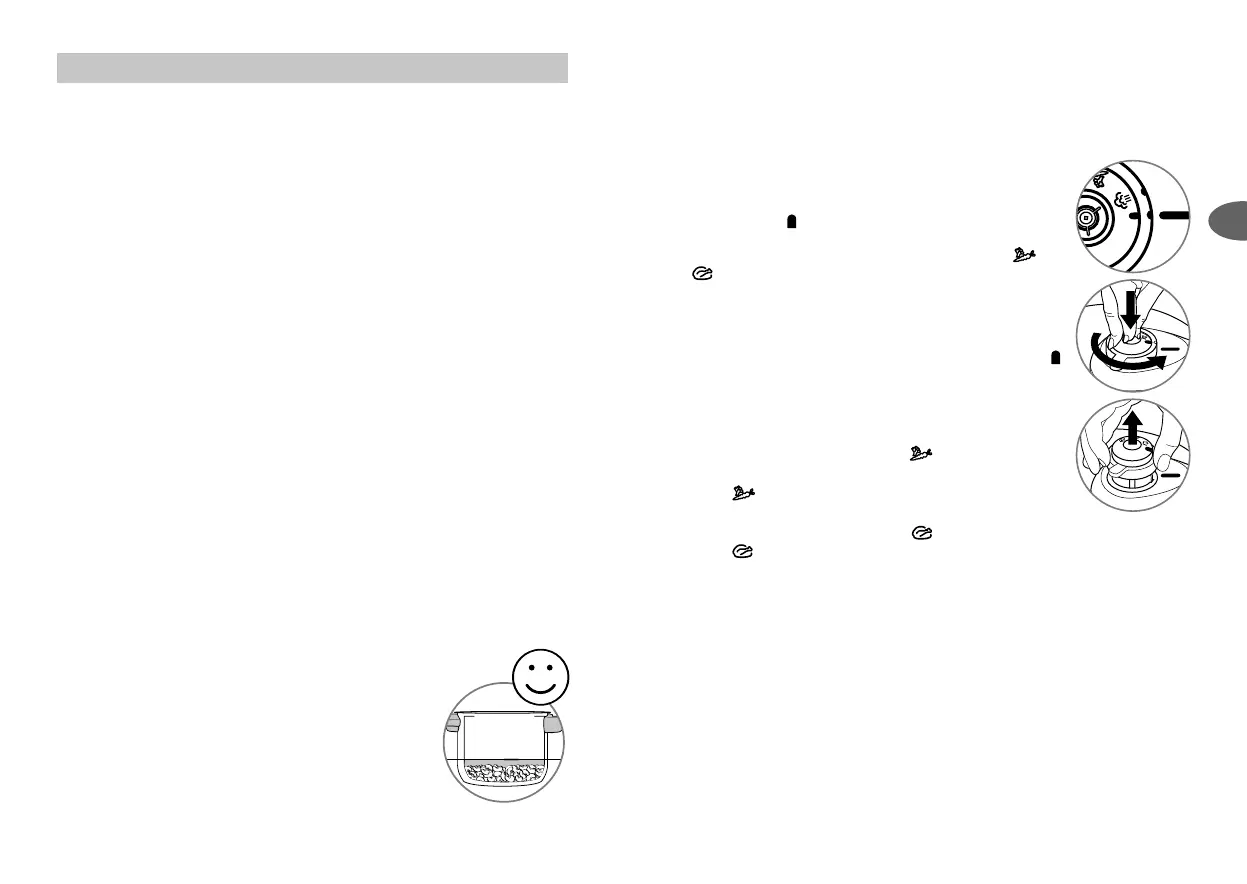 • Hoidke ühe käega poti pikast käepidemest (L) ja keerake teise käega kaane