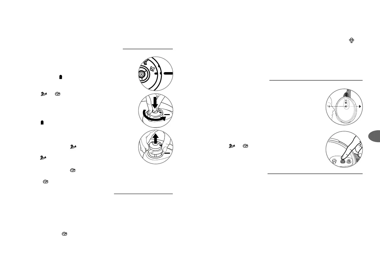 • Kad spiediena indikators (D) nokrīt uz leju, spiediena katls vairs nav zem