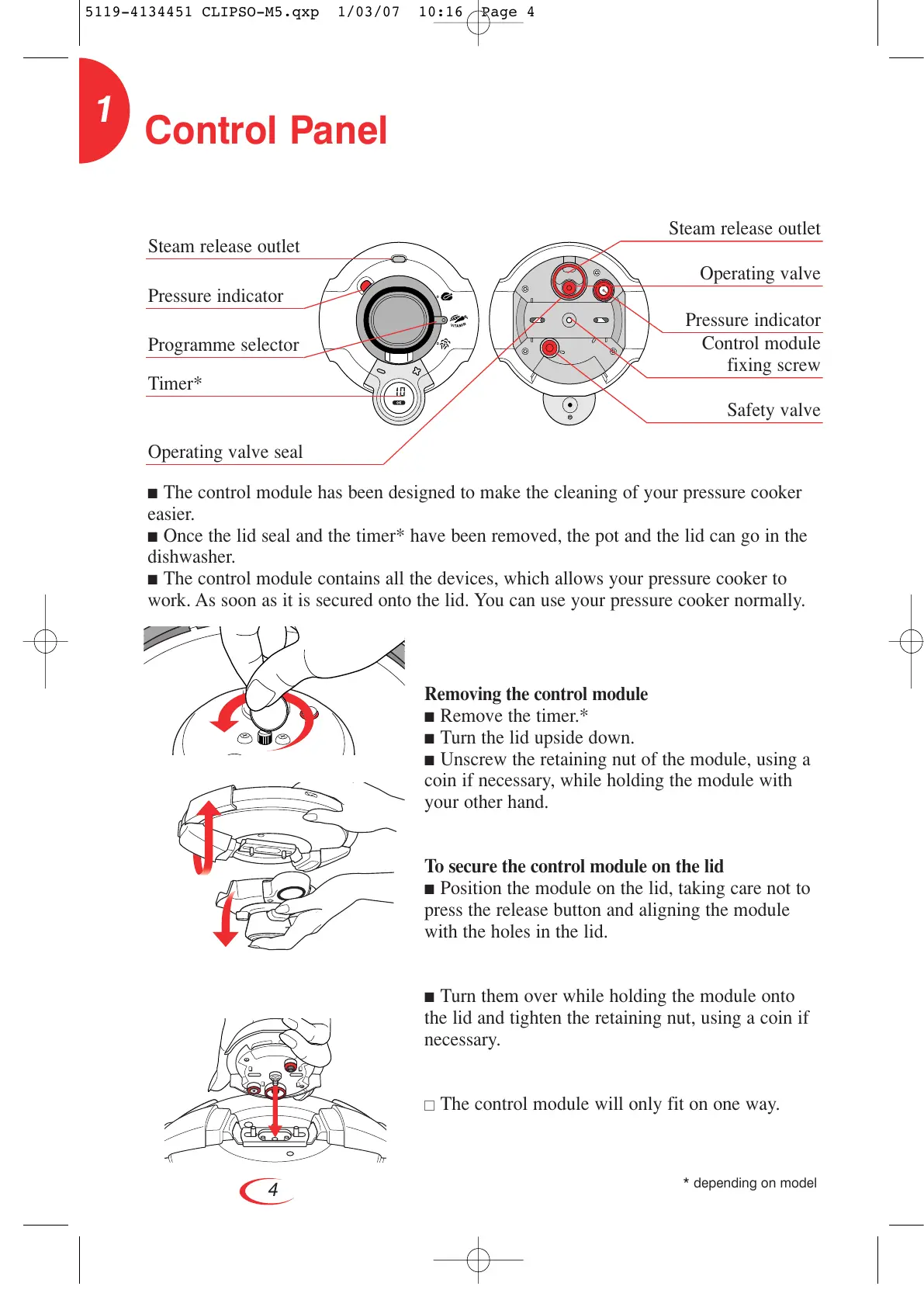 ■ The control module has been designed to make the cleaning of your pressure cooker