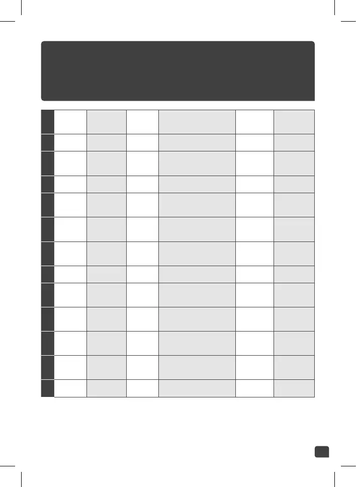 TABLE OF CYCLES CYCLI TABEL DÖNGÜ TABLOSU