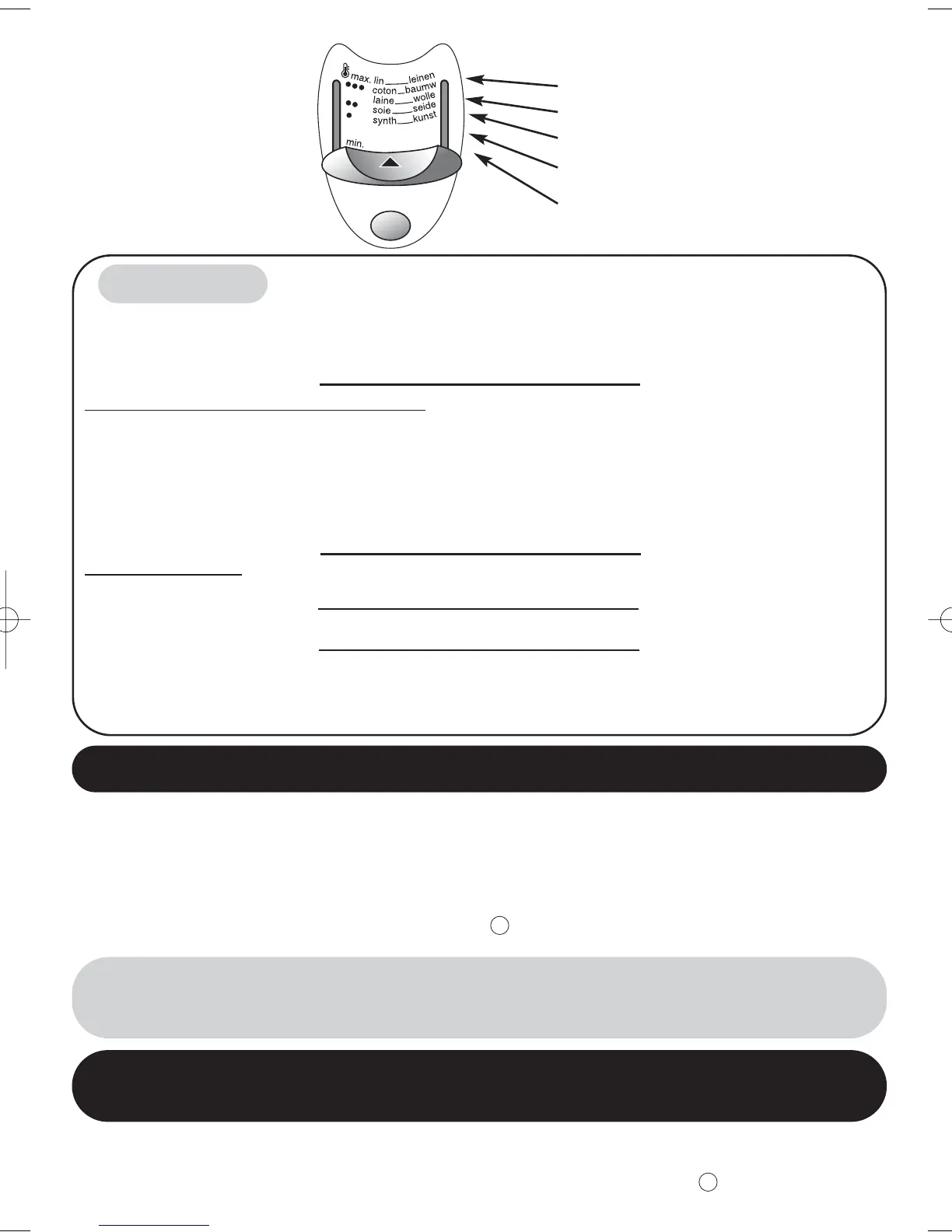 • Pour les tissus délicats (●), actionnez très modérément la commande vapeur située sous la poi-