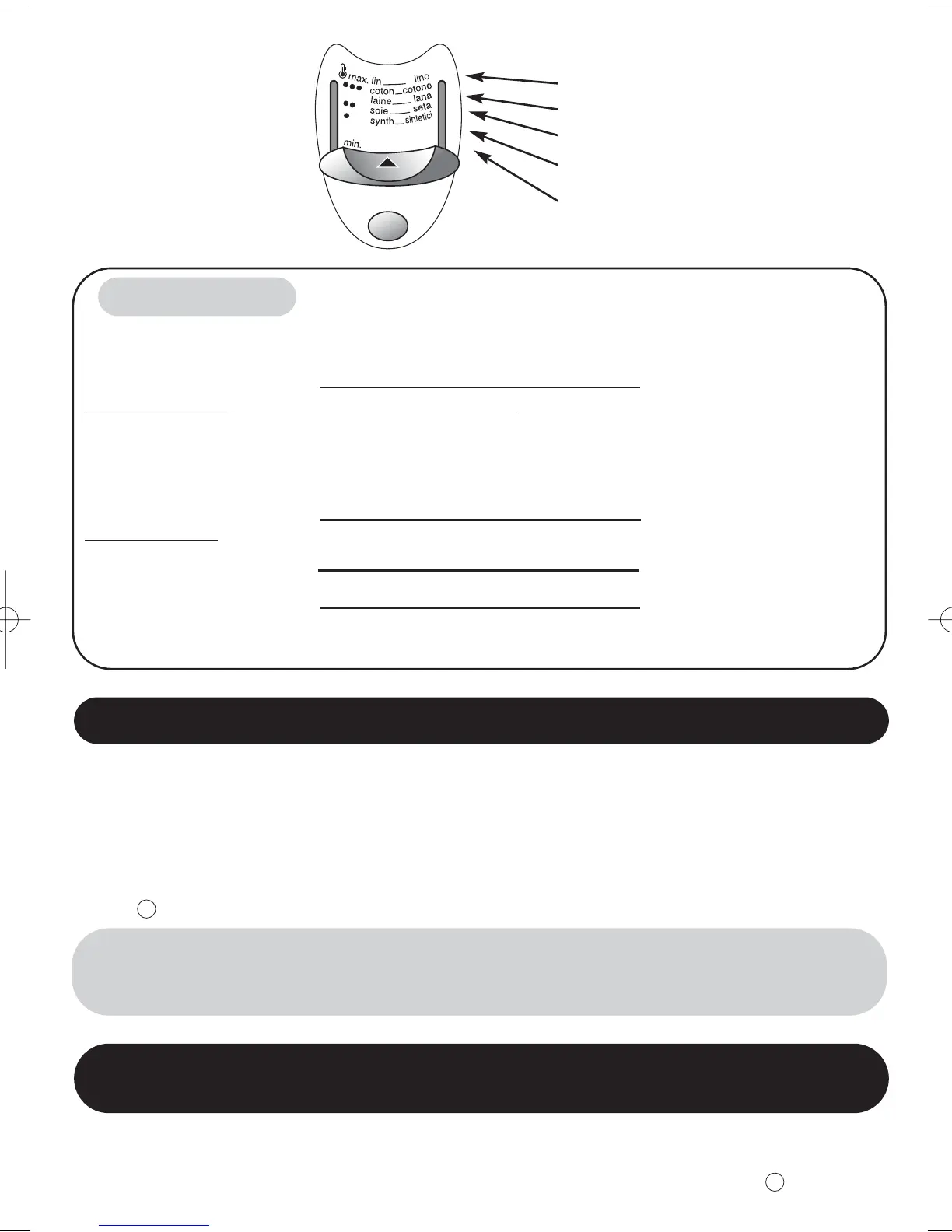Regolazione del cursore della temperatura del ferro da stiro :