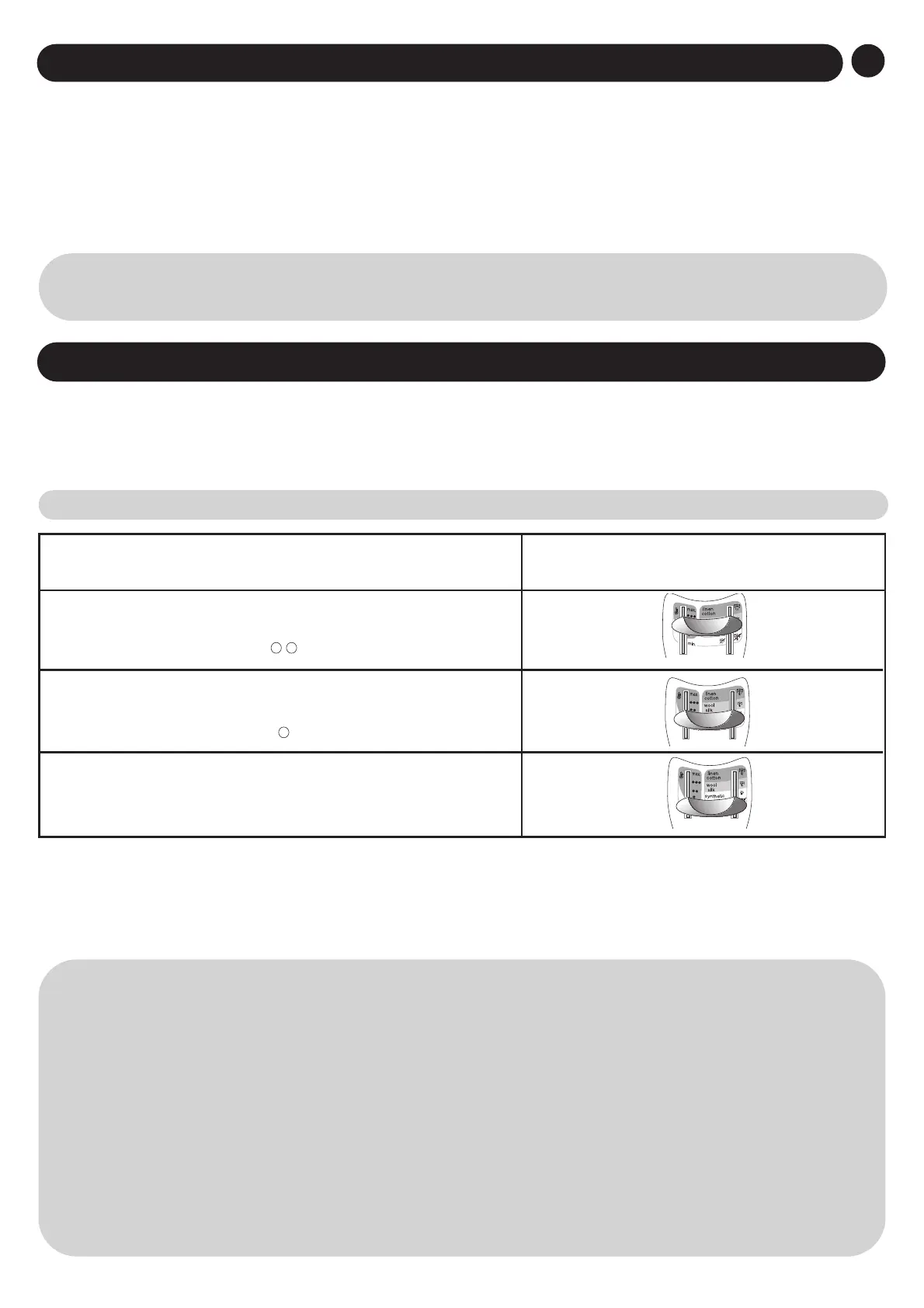 - Börja med material som kräver låg stryktemperatur (●) och avsluta med att stryka material som tål högre temperaturer (●●● eller Max).