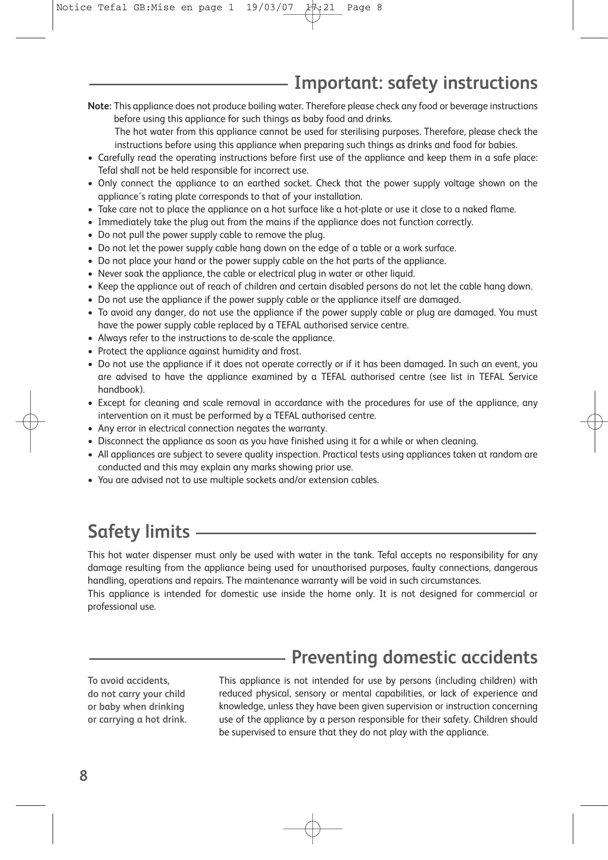 Notice Tefal GB:Mise en page 1 19/03/07 17:21 Page 8