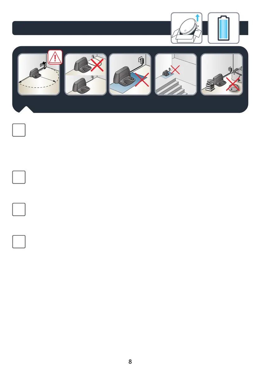 and 2m in front of the docking station. Do not install the docking station near stairs.