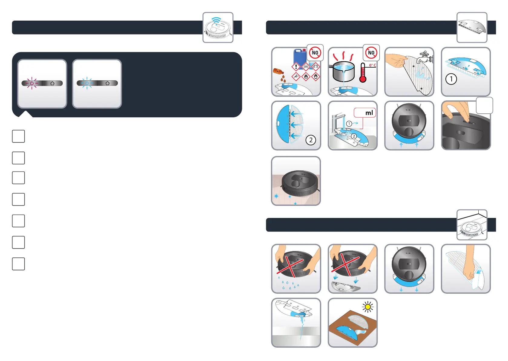 Когда кнопки мигают фиолетовым цветом, робот-пылесос готов к подключению