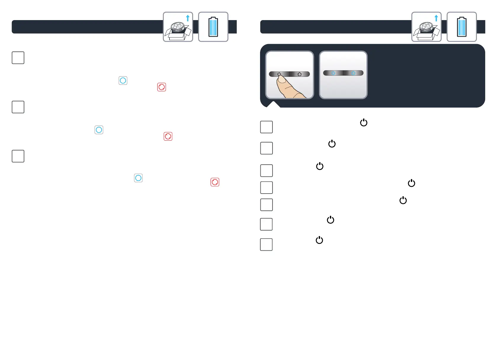 Индикаторы мигнут, а затем загорятся. Если аккумулятор разряжен, робот-пылесос не