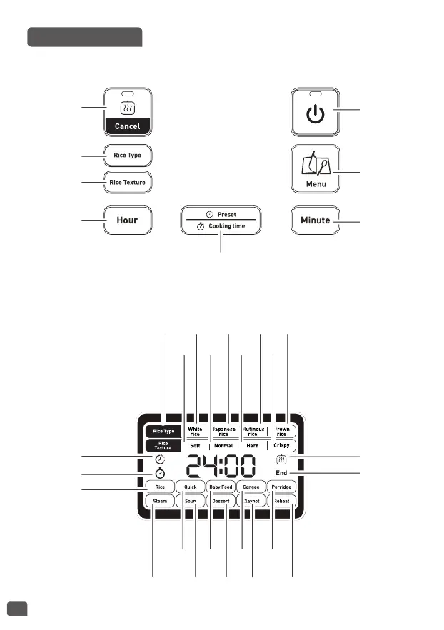 TEFAL RK8035 - Control Panel Overview; Button and Indicator Layout