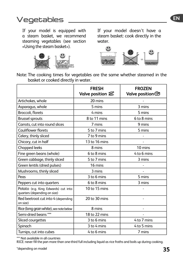 Fine green beans (whole) 6 to 8 mins 4 to 6 mins
