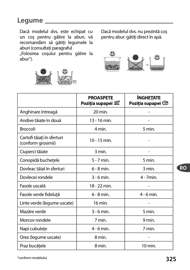 pentru abur: gătiți direct în apă.