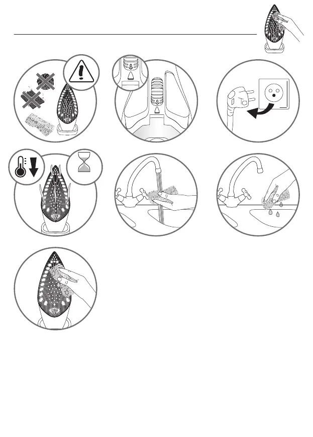 *FR Nettoyage de la semelle • KO 열판 세척하기TH การทำความสะอาดแผ่นหน้าเตารีด