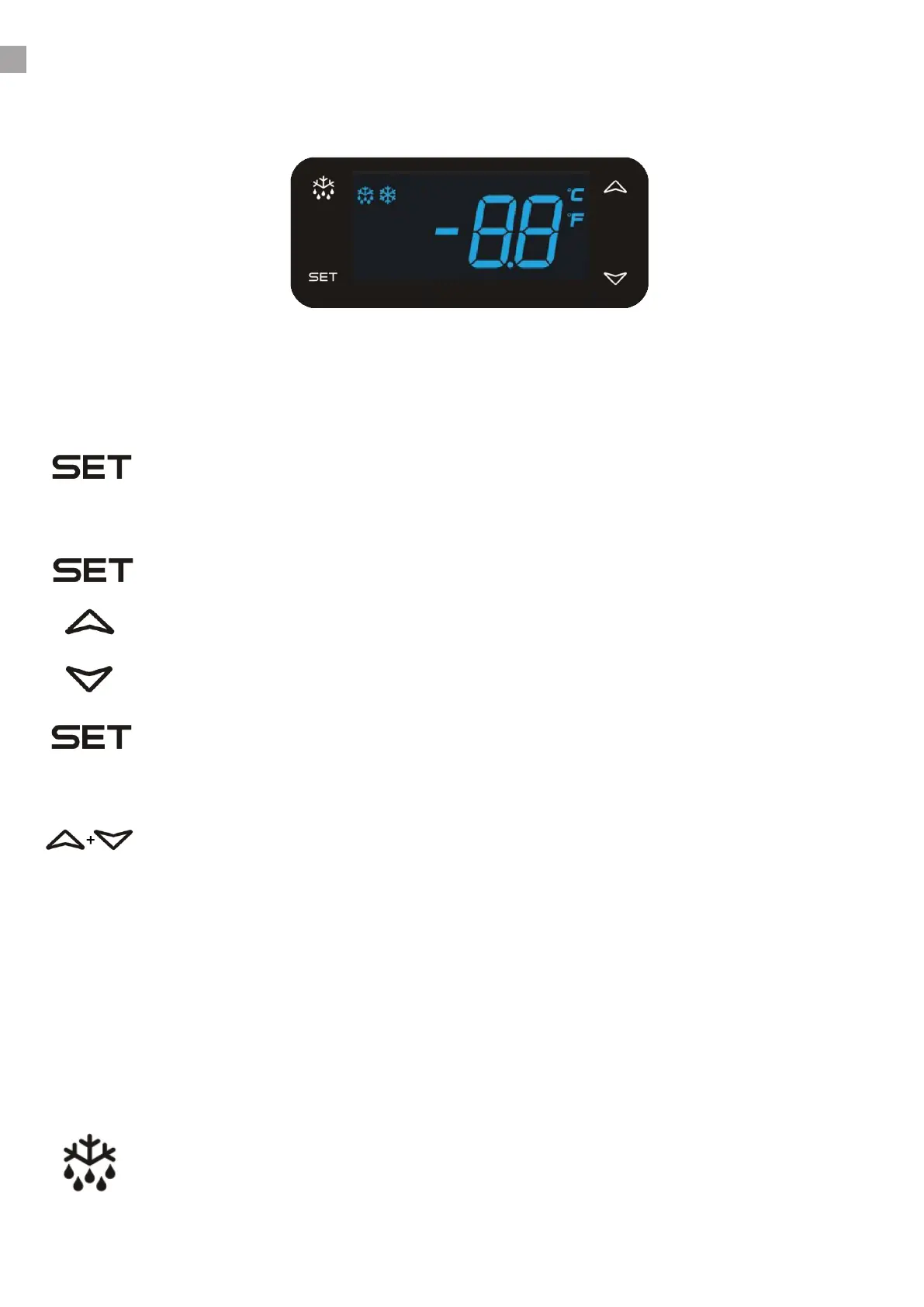 Tryk på denne tast i mere end 3 sec., dette vil starte en manuel afrimning og derefter