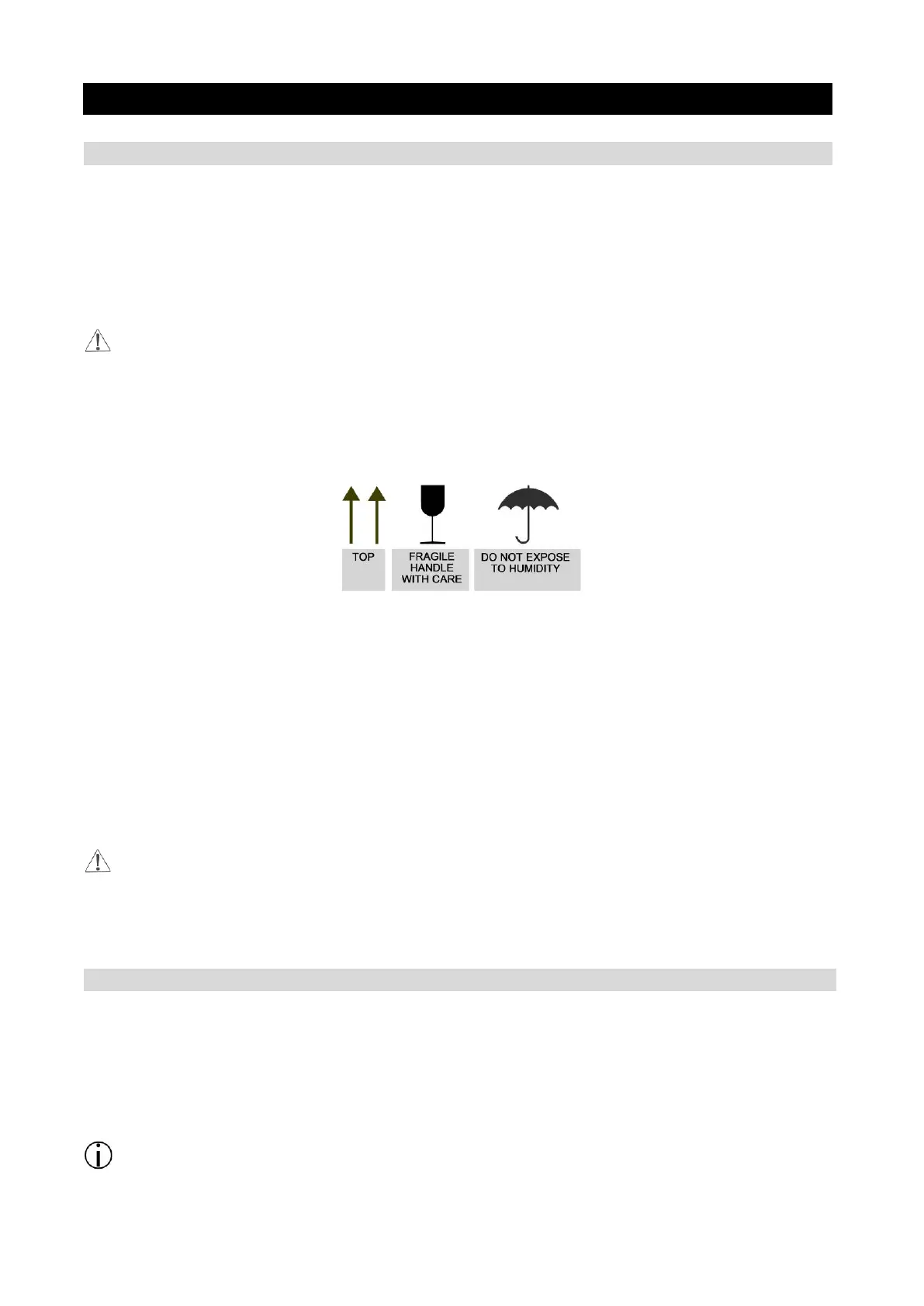 On delivery, check that the packaging is intact and has not undergone any damage during transportation.