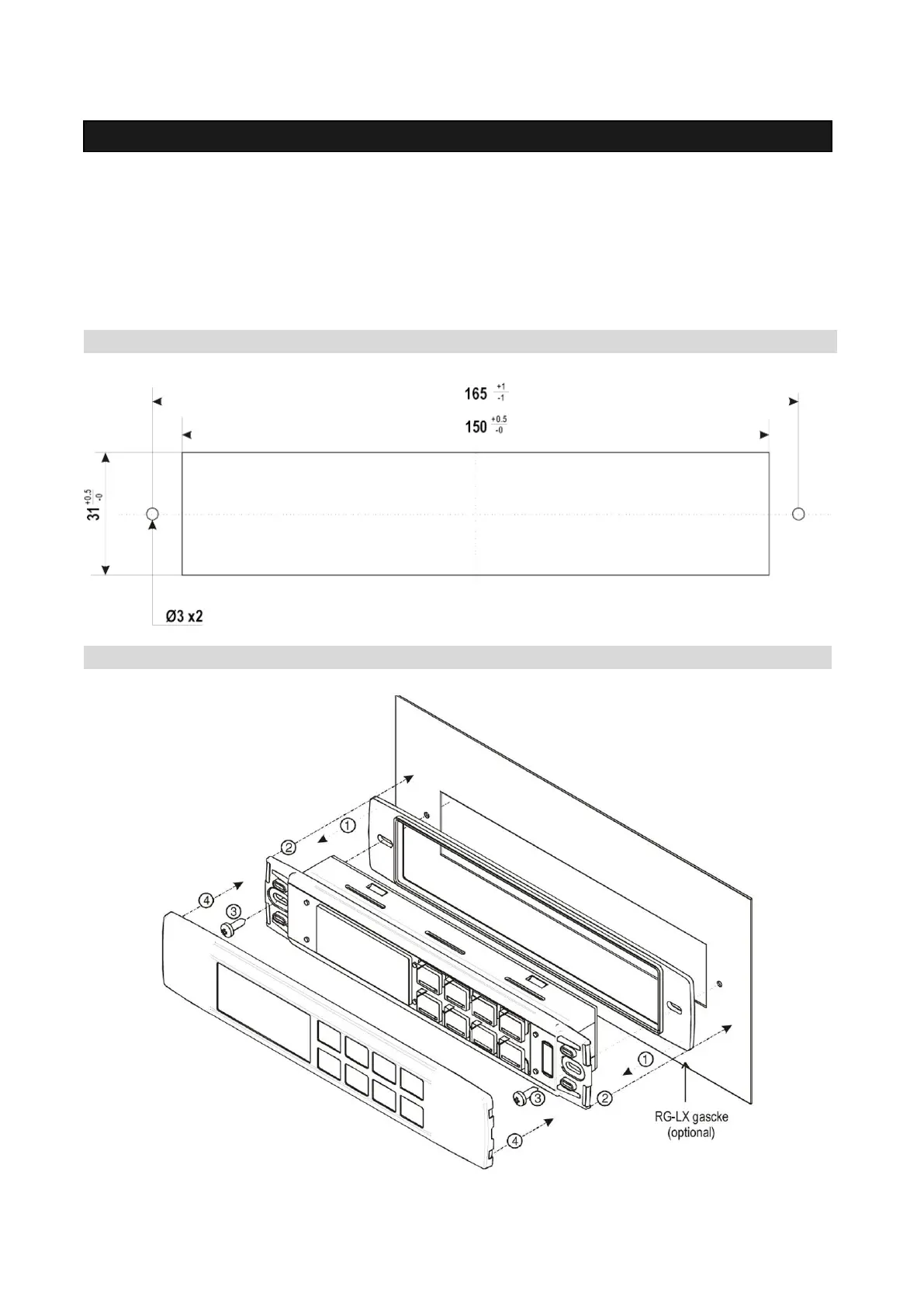 screws ø 3 x 2mm. To obtain an IP65 protection grade use the front panel rubber gasket (mod. RG-L).