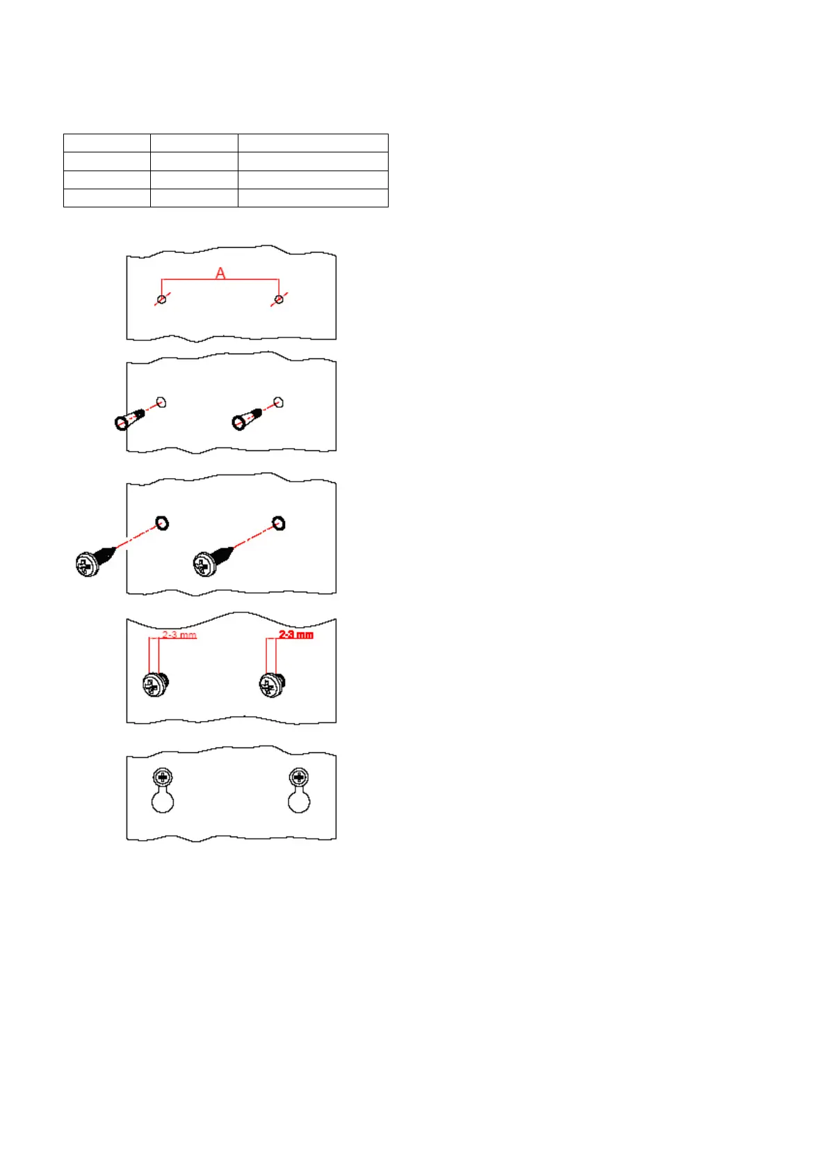 Varmista, että ruuvinän ja seinän välinen etäisyys on 2-3