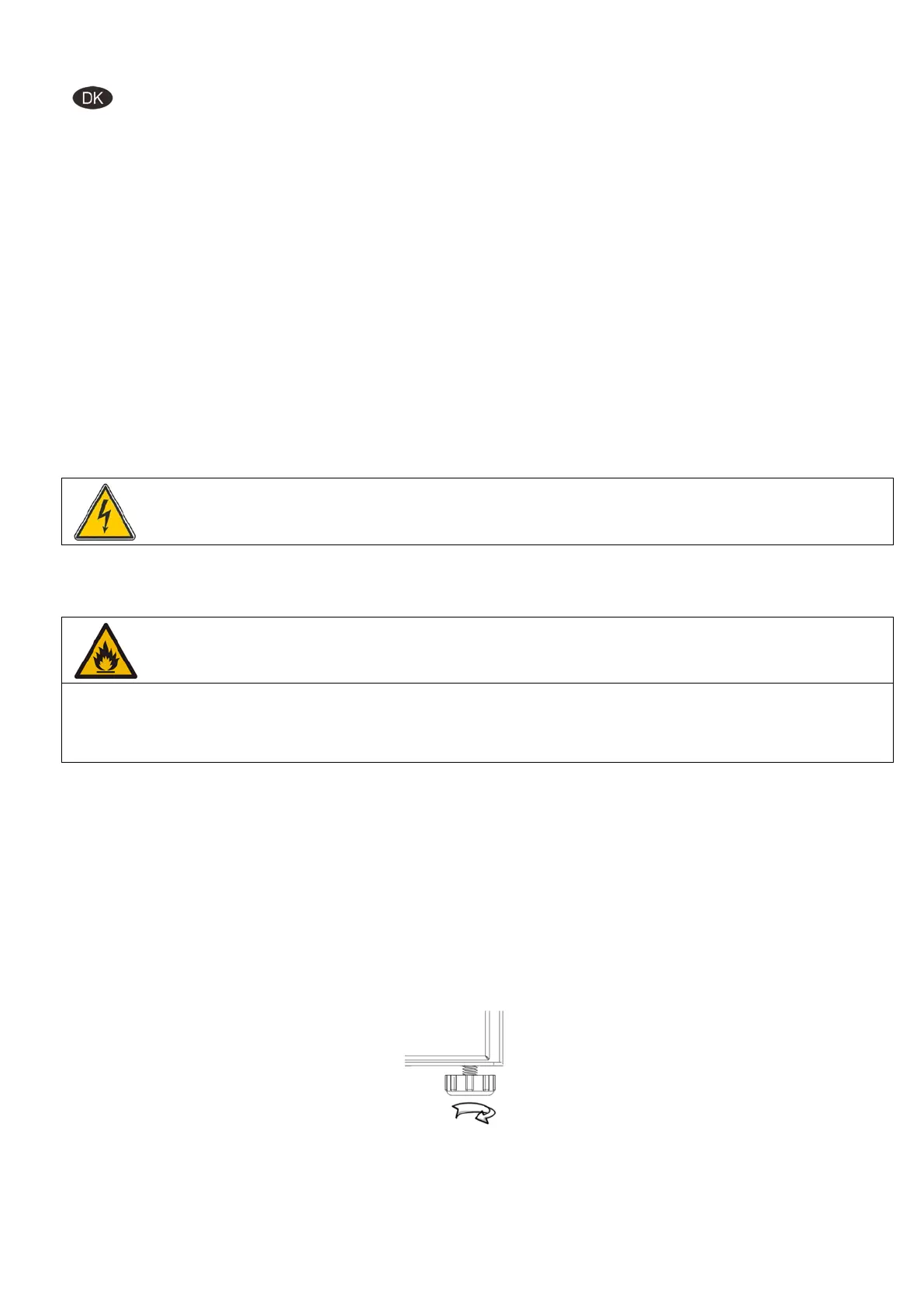 Dette skab indeholder er brændbart kølemiddel, sørg derfor for god ventilation omkring skabet.