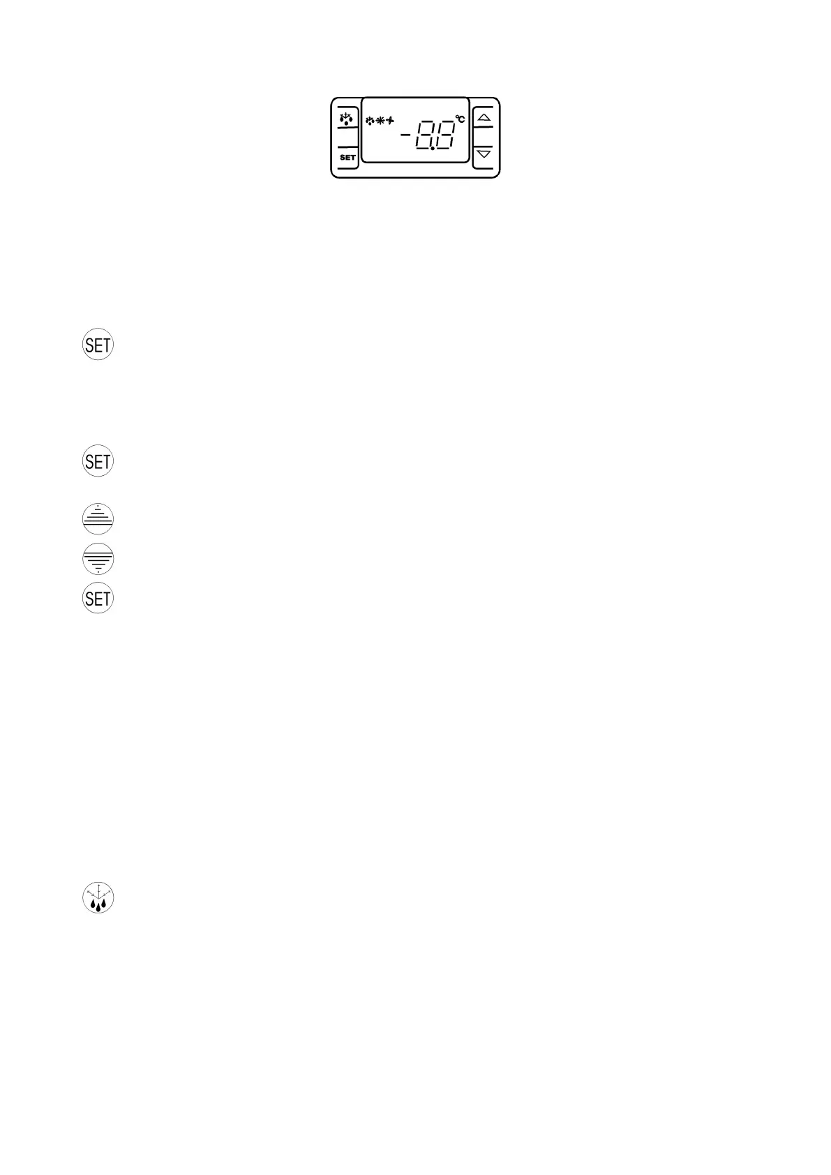 При нажатии на данную кнопку, температура снижается.
